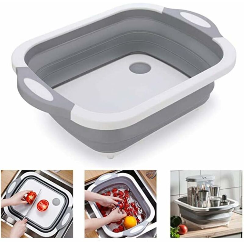 Materiale ecologico - Realizzato in plastica PP di alta qualità e materiale in silicone alimentare TPR, resistente, inodore, non tossico, senza crepe e senza deformazioni. 【Uso 3 in 1】 Questo articolo è perfetto per tagliare verdure, frutta e carne, come lavello pieghevole anche per lavare e scolare piatti o cibo. Può essere utilizzato anche come cesto portaoggetti per conservare cibo e bevande e il design pieghevole lo rende facile da riporre e trasportare. Questo prodotto è un'ottima scelta per picnic, barbecue, campeggio, camper, ecc. 【Facile da usare】 Premi il tagliere centrale con una mano, tieni la maniglia con l'altra mano e apri il lavello. Il tappo di scarico inferiore può scaricare direttamente, il che è semplice e diretto. Lo speciale pad antiscivolo ne consente l'installazione sulla maggior parte delle superfici lisce senza scivolare. 【Dimensioni: piegato】 40 * 30 * 3 cm, aperto: 40,5 * 30 * 13 cm. Questa dimensione è comoda e non occupa molto spazio. Nota: puoi metterlo