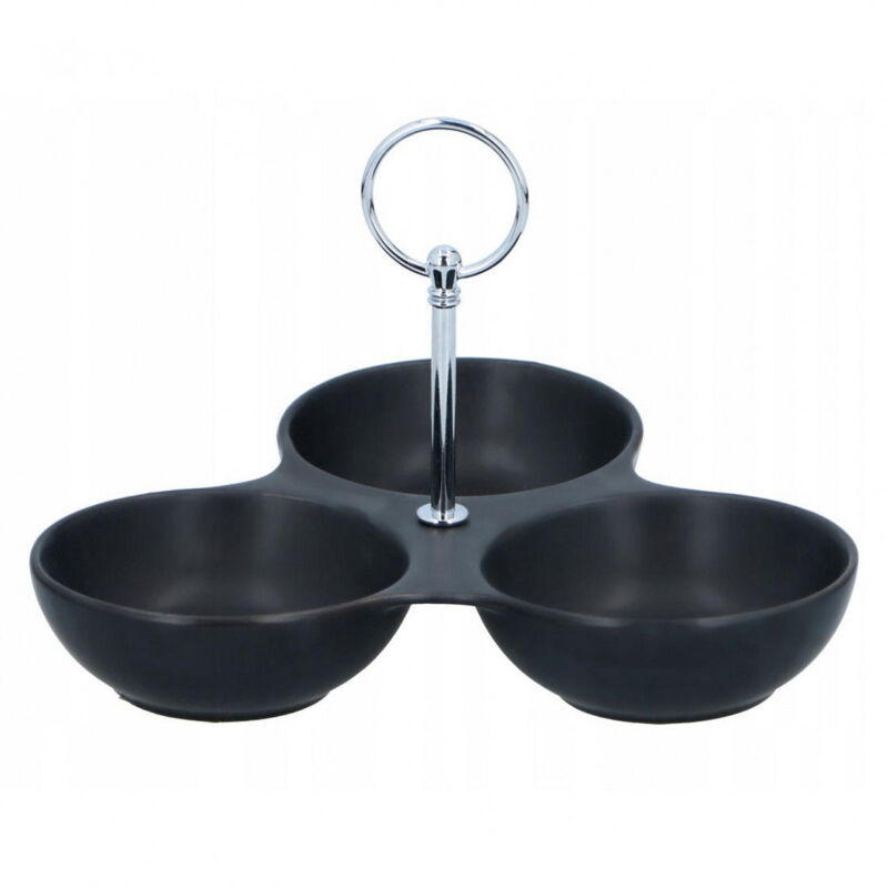 Ciotola snack in porcellana a tre sezioni, ottima sia per snack, condimenti e salse. Una maniglia in acciaio inossidabile lo rende facile da maneggiare e trasportare. - Ciotola per snack in porcellana - Tre sezioni - Manico in acciaio inox Specifiche: Colore: multicolore Materiali: porcellana, acciaio inossidabile Dimensioni: 20 x 19 x 13,5 cm La confezione contiene: 1x ciotola per snack