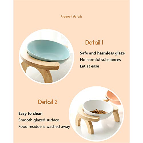Ciotole per cani,Ciotola domestici ceramica, ciotola per animali domestici ad angolo regolabile per protezione della colonna vertebrale cervicale-Ciotola singola verde + struttura in legno (grande)