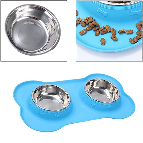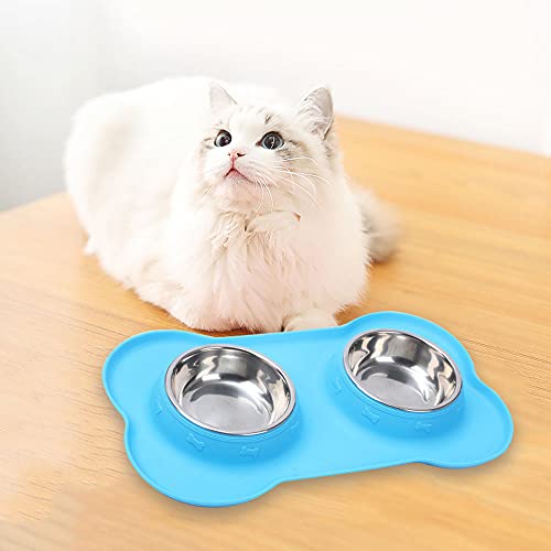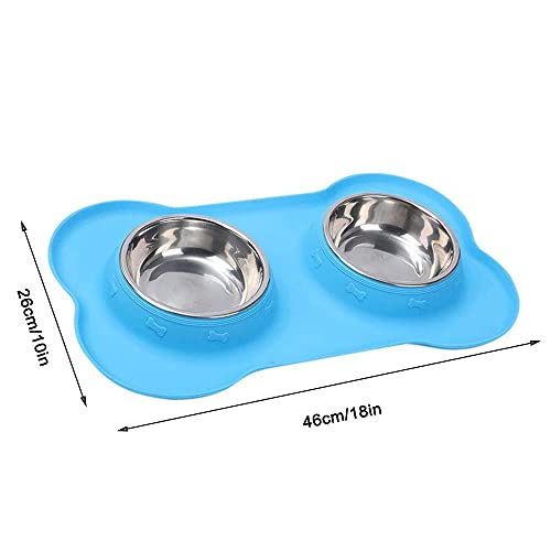 Set Ciotole Gatti Acciaio Inossidabile, Ciotola Cibo Cani, Cani Gatti Ciotola, Ciotole Doppie Animali Domestici, per Vari Tipi di Gatti e Cani Mangiatoia per Animali Domestici, Blu