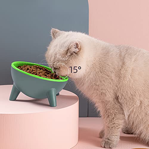 Ciotole per gatti Rialzata Ciotola Cibo per Gatti ad angolo inclinato 15° Prevenire il Trabocco,Adatto a Gatti e Cuccioli (verde)
