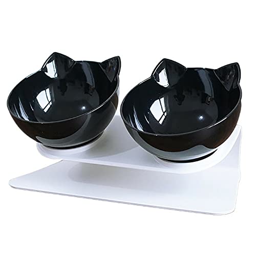 Ciotole per gatti rialzate a 15° con doppia ciotola in plastica per gatti e cani di piccola taglia, colore: nero