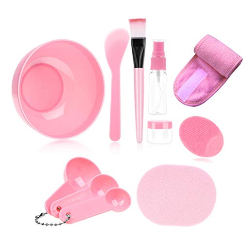 【Soddisfa le esigenze quotidiane fai-da-te】 : Set di strumenti per maschere per il viso Vieni con 1 ciotola per la miscelazione della maschera, 1 spatola, 1 fascia per la spa, 1 pennello per lavaggio manuale, 1 spazzola morbida, 1 soffio umido, 3 misurino, 1 flacone spray e un piccolo Bottiglia da ammollo, set 11 in 1, con tutto il necessario