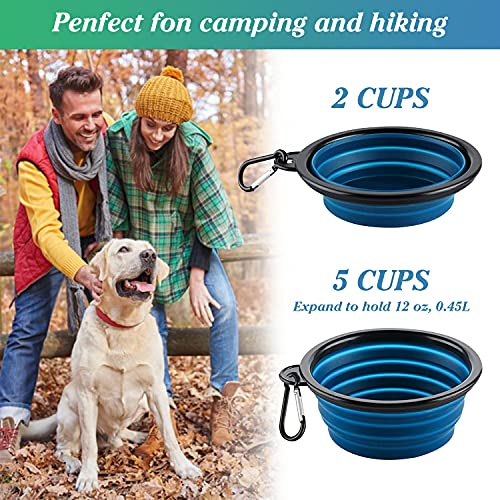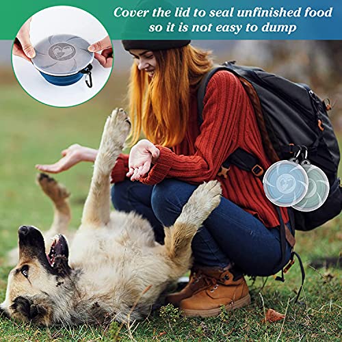 2 ciotole da viaggio pieghevoli per cani, con coperchio e gancio, in silicone, per gatti, cani e animali domestici, per acqua e mangime, con allenamento a clic (450 ML)