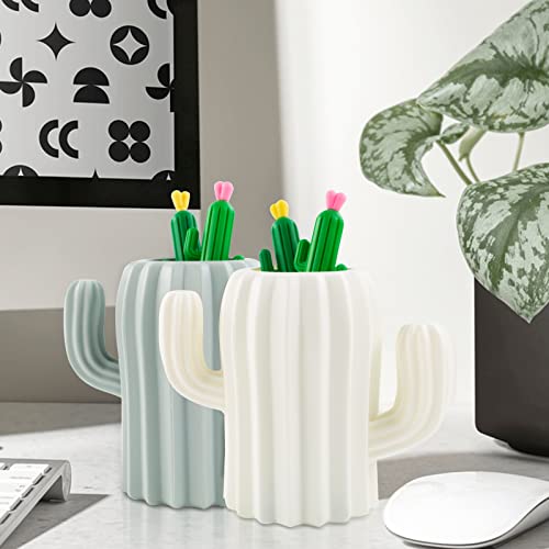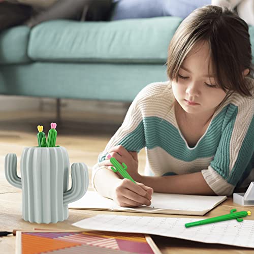 CIOUYAOS 2 portapenne a forma di cactus con 4 penne gel a forma di cactus, grazioso organizer per penne, accessori da scrivania creativi e divertenti per trucco, cancelleria e porta pennelli