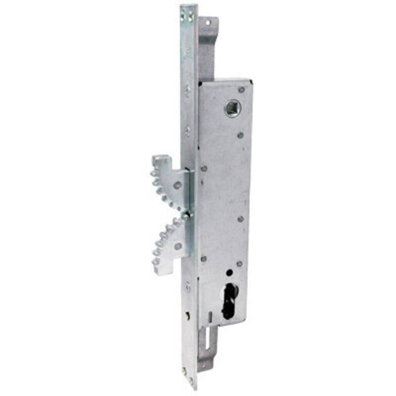 Adatta per infissi ad anta e scorrevoli. Per cilindro sagomato. Chiusura triplice con catenacci autobloccanti, composti da due ganci dentati contrapposti e realizzati in acciaio carbonitrurato, e asole per aggancio aste. Azionabile con maniglia e bloccabile con cilindro. Corsa aste Mm. 25. Quadro maniglia Mm. 8. Frontale in acciaio zincato con bordo quadro da Mm. 30x310. Altezza scatola Mm. 205. In dotazione: 2 agganci filettati, 2 spine elastiche, vite fissaggio cilindro e bocchetta coprilavorazione.