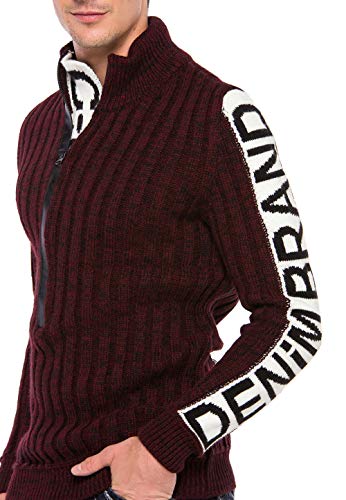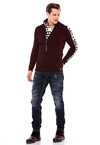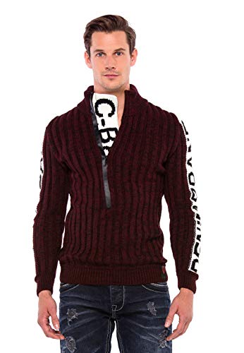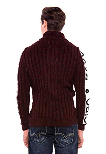 Cipo & Baxx Maglione da uomo a maglia grossa, con cappuccio Bordeaux ecru L