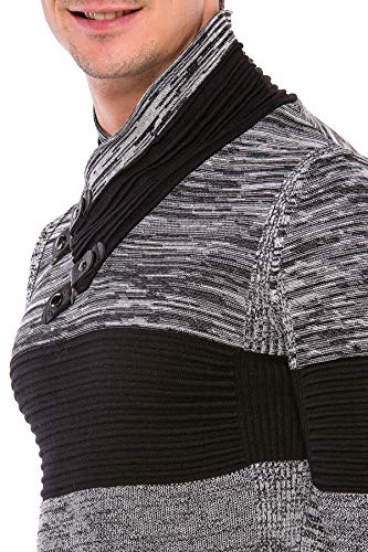 Cipo & Baxx - Maglione da uomo a maniche lunghe, con collo a scialle, design a costine Nero S