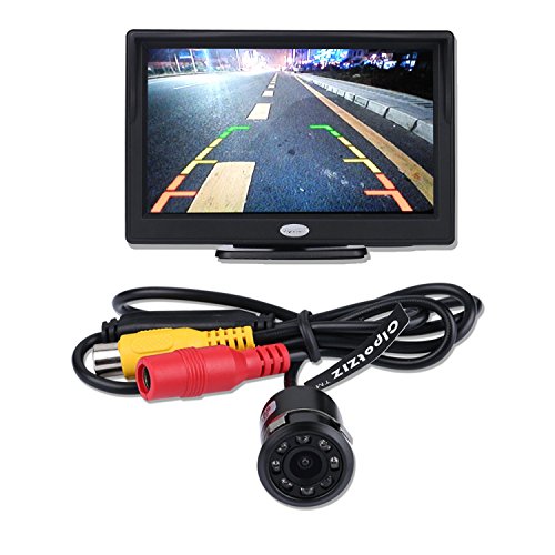 CIpotZIZ, kit telecamera per retromarcia e monitor 5" per auto, monitor TFT LCD alta definizione HD 800 (RGB) x 480 con 2 supporti/staffe + telecamera universale posteriore di parcheggio con visione notturna a infrarossi HD 8 LED.