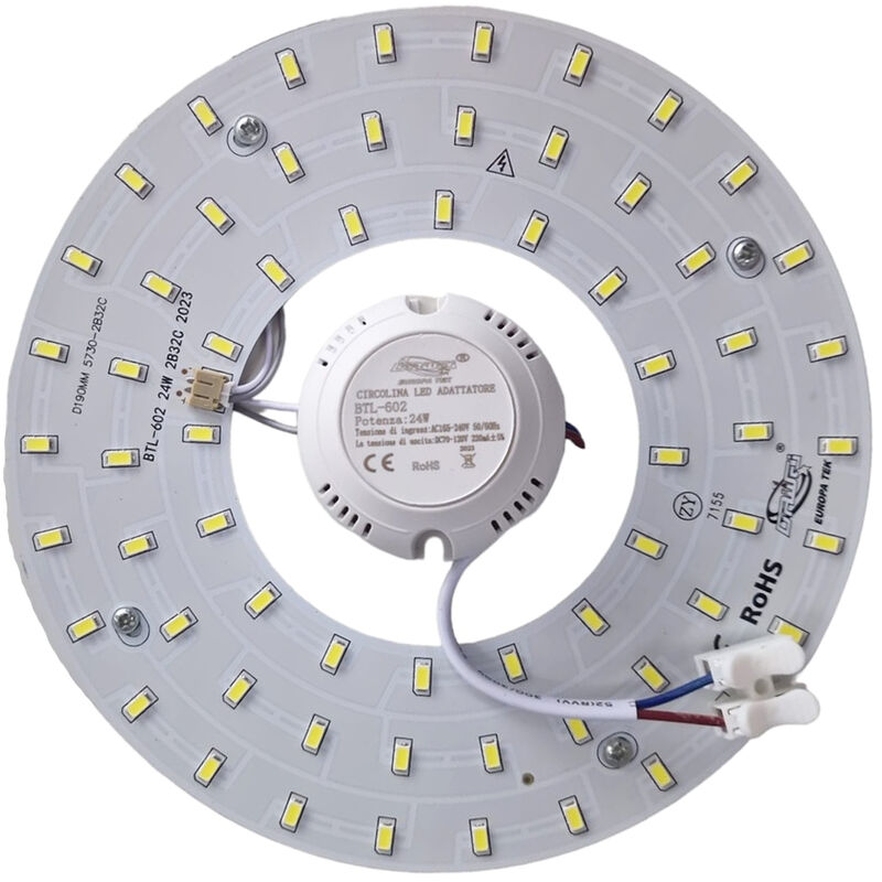 Modulo led circolare ideale per modificare le tradizionali plafoniere a neon. Facile da installare, basta eliminare il vecchio neon insieme a starter e reattore ed inserire il modulo che si fissa perfettamente alla base di alluminio della plafoniera mediante dei supporti calamitati, il driver dispone del biadesivo sul retro. Caratteristiche tecniche: Circolina LED Tipo LED: SMD Potenza: 24W Lumen: 3347.6 Lm Fondo calamitato Luce fredda 6000K Angolo fascio luminoso: 120° Diamentro: 190 mm circa Peso: 0,080 Kg circa La confezione contiene: Nr. 1 Circolina LED