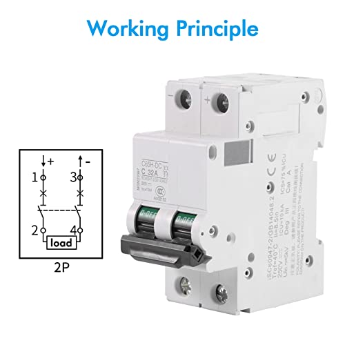 DC Circuit Breaker-1pc 250V DC 2P Mini interruttore solare 16A 32A 63A DC MCB per sistema fotovoltaico(32A)