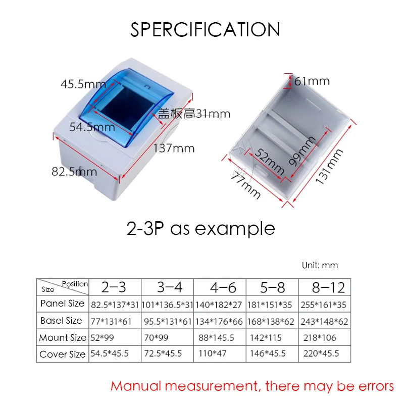 Circuit Breaker Case 2-3P Electric Leakage Protect Box For PZ30 Distribution Household Concealed Suit 2-3 Position