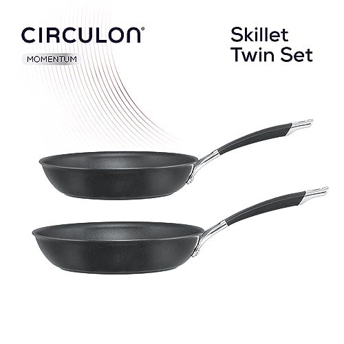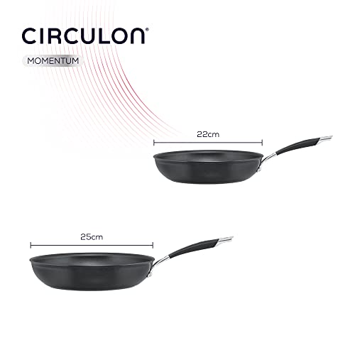 Circulon Momentum padella, in resistente alluminio anodizzato, nero, Alluminio duro anodizzato, Black,Twinpack (1 x 21,6 cm e 1 x 25,4 cm)