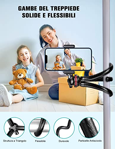 [Otturatore Telecomandato Senza Fili] La risposta veloce e la connessione stabile permettono di scattare foto o registrare video su tutti gli smartphone fino a 33ft/10m di distanza. Evita efficacemente la vibrazione al tuo dispositivo quando premi l'otturatore. Questo trepiedi per cellulari permette di registrare i tuoi momenti cruciali della vita semplicemente con le tue mani.