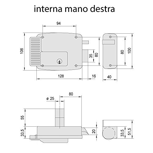 CISA 11721801 Elettroserratura da applicare, 12 V, Zincato, Entrata 80, mano destra