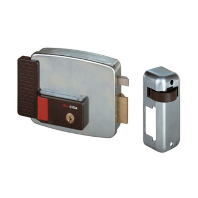 Art. 11731 pulsante e cilindro interno ed esterno fisso, scrocco autobloccante. Completa di contropiastra e tettoia. Mano SX Scatola mm 128x106 Entrata 50 mm