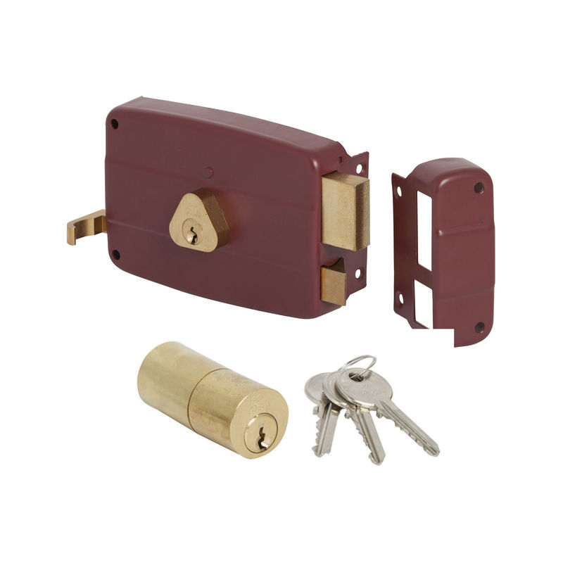 CISA 50121 MM.70 DX SERR.APPL. X LEGNO CIL.FISSO Serratura da applicare per legno. Catenaccio e scrocco.Pomolo interno e cilindro esterno fisso. Mano DX Entrata mm.70 Categoria dell'articolo: SERRATURA DA APPLICARE PER LEGNO CISA