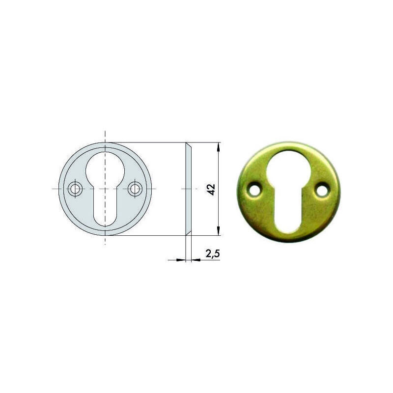 Ottone burattato Abbinabile a cilindri profilo europeo 2 fori fissaggio Dimensione mm 42 spessore mm 2,5