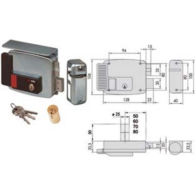 Scatola e bocchetta in acciaio con rivestimento in zinco, tensione 12v ac, scrocco autobloccante, catenaccio 2 mandate manuali - apertura dall?interno con pulsante, cilindro fisso tondo, dotazione: 3 chiavi
