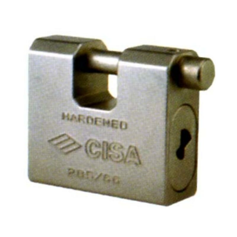 Lucchetto Cisa rettangolare 84mm in acciaio - F150717284 Lucchetto in acciaio con chiave lim corpo monoblocco in acciaio carbonitrurato con trattamento anticorrosivo di nichelatura chimica cilindro sostituibile e ricifrabile piastrino di protezione cilindretto in acciaio 2 chiavi 00401 mis lunghezza 84 mm interasse 36 mm spessore 17 5 diametro del perno 12 mm Tipo: Lucchetto Adatto a: Uso commerciale e residenziale Finitura: Acciaio inossidabile Materiale: Acciaio inossidabile Colore: Grigio