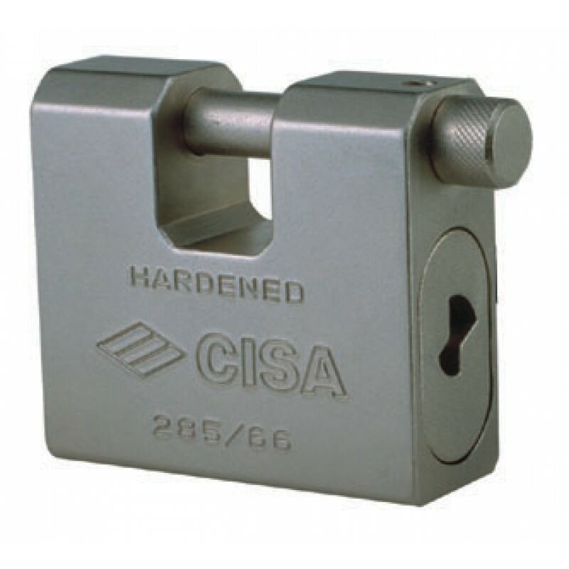 Corpo monoblocco - In acciaio carboniturato - Chiavi con profilo - Lim brevettato - 2 chiavi in dotazione Misura 66 mm. Asse 10 mm. Misura int. 20x12 mm.