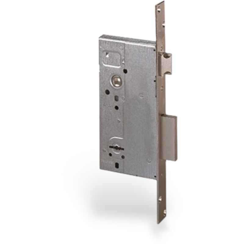 Caratteristiche: Da infilare Con due mandate con scrocco Contropiastra Copritoppa Quadro maniglia Tre chiavi Verniciata nera Modello: Entrata 45 mm Entrata 50 mm Entrata 60 mm