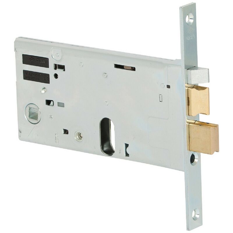 Foro cilindro europeo ovale. con scroccp autobloccante. scatola e frontale zincato. scrocco in ottone, altezza scatola 77 mm. tensione 12v, quadro maniglia mm 8. dotazione vite di fissaggio cilindro. senza cilindro.14451 e70 fr.mm 20/int.mm 67