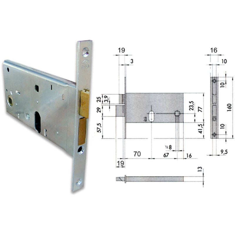 Serratura fasce alluminio infilare Zincata - catenaccio scrocco reversibile Ambidestra Cilindro nonincluso Scatola 77 - Frontale 16x160