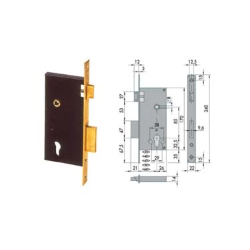 Mm.40 (5c110400) scatola in acciaio verniciata colore nero semi-opaco, frontale e contropiastra in ottone satinato, catenaccio a 2 mandate con scrocco separato reversibile, con quadro maniglia da mm.8 passante, funzionante con cilindro sagomato non compreso Categoria merceologica: Serrature, chiusure di sicurezza e accessori - Sicurezza - Serrature per portoncino da infilare