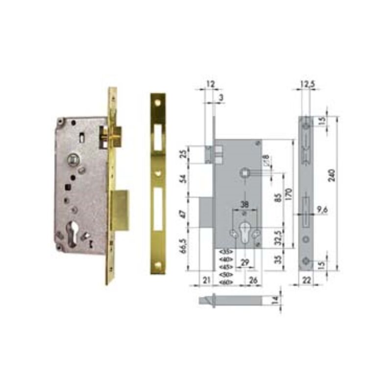 Mm.50 (5c611500) scatola in acciaio con rivestimento in zinco, frontale e contropiastra con bordo quadro ottonati, catenaccio a 2 mandate e scrocco reversibile, funzionante con cilindro sagomato non compreso Categoria merceologica: Serrature, chiusure di sicurezza e accessori - Sicurezza - Serrature per portoncino da infilare