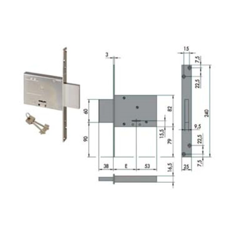 Mm.70 (57013700) per porta in ferro, scatola e frontale in acciaio con rivestimento in zinco, catenaccio in acciaio nichelato, 4 mandate, dotazione borchia interna in acciaio e 2 chiavi Categoria merceologica: Serrature, chiusure di sicurezza e accessori - Sicurezza - Serrature a doppia mappa da infilare