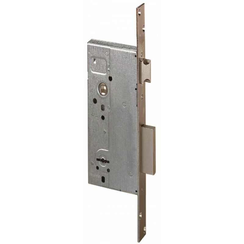 Serratura da infilare a doppia mappa. 2 mandate e scrocco, con contropiastra e copritoppa, 3 chiavi, scatola mm. 76x170. Art. 57211 cod. 8953 E. mm. 50 - F. mm. 22 cf/pz 1