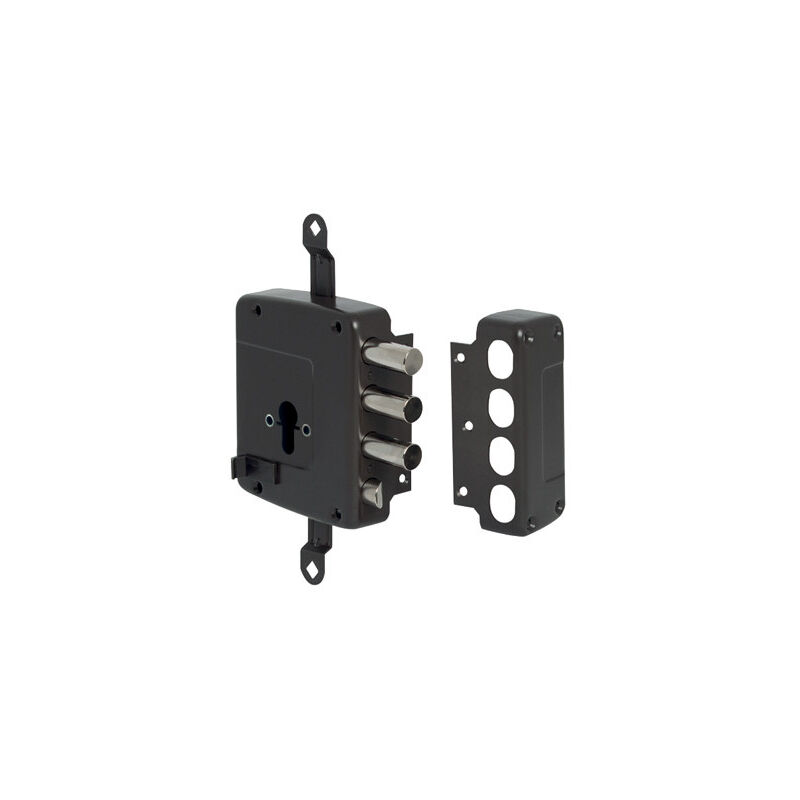 2 Mandate. Scatola e bocchetta in acciaio verniciate color bronzo antico metallizzato. Scrocco in acciaio nichelato. Catenaccio a 3 pistoni in acciaio nichelato. Tirante sul dorso. In dotazione: Bocchetta, Borchia interna e esterna, Viti fissaggio, Foglio instruzione. Cilindro non incluso.
