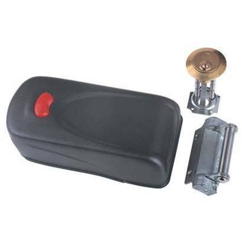 VERN C.STACCATO +PULSANTE E.MM 50/80 DX/SX Ambidestra. Cilindro staccato. Pulsante interno. Catenaccio a gancio rotante in alluminio estruso. Tensione 12V. Scudo di protezione in acciaio verniciato. Bocchetta in metallo con perno oscillante in acciaio inox. In dotazione: 3 chiavi piatte, 2 spessori per bocchetta, viti di fissaggio e 1 bocchetta.