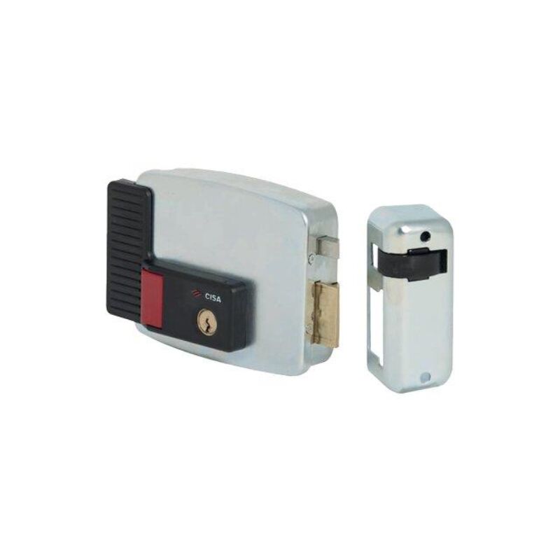 Serratura metallo applicare elettr 11931 int cisa Zincata c.tondo fisso+scr e.mm 60 sx con cilindro esterno lungo mm. 55. scrocco mano interna autobloccante elettrificato 12v. fermo a giorno. scatola mm. 128x106. bocchetta mm. 40x100. in acciaio zincato. in dotazione: 1 bocchetta e 3 chiavi piatte.
