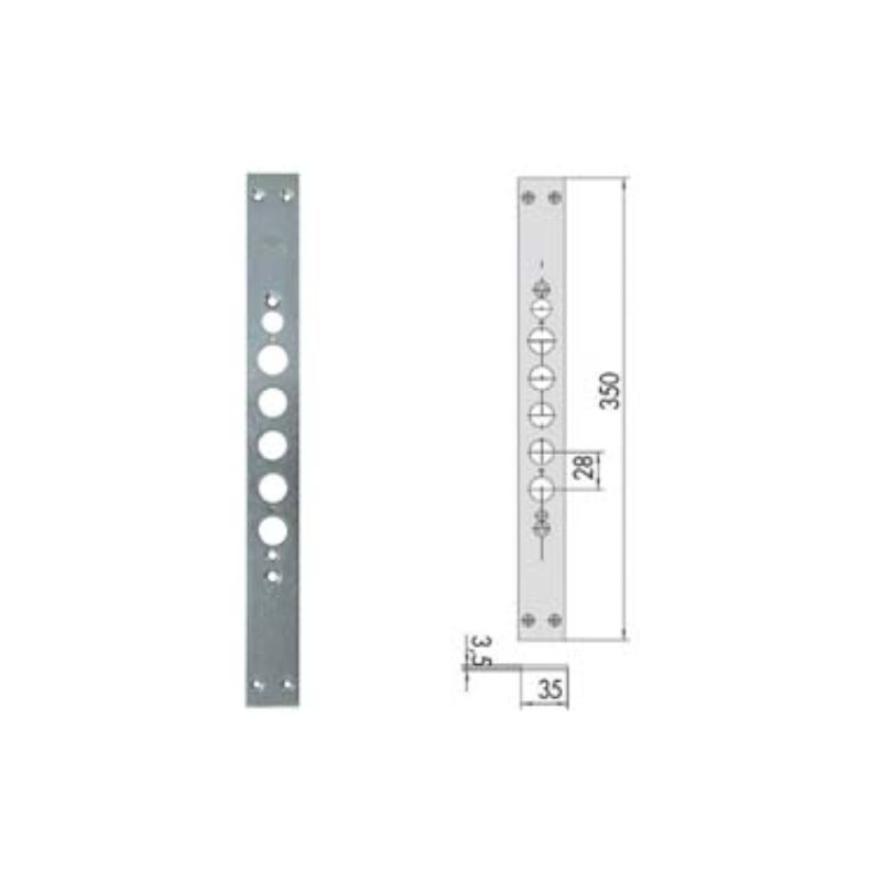 Mm.350 (06221110) testata in acciaio nichelato - interasse catenacci mm.28 - adatta per serrature cisa serie: 15500 Categoria merceologica: Serrature, chiusure di sicurezza e accessori - Sicurezza - Contropiastre e frontali per serrature
