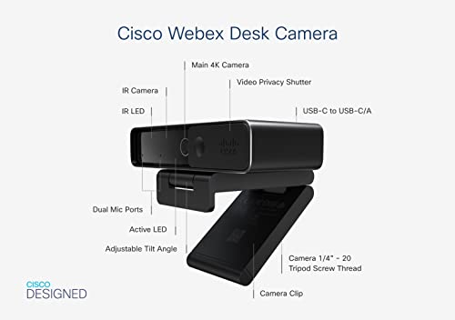 Cisco Webex Desk Camera Webcam con Video Ultra HD Fino a 4K, Supporto funzionalità iHDR per Prestazioni in Condizioni di scarsa Illuminazione, Garanzia Hardware Limitata di Un Anno (CD-DSKCAM-C-WW)