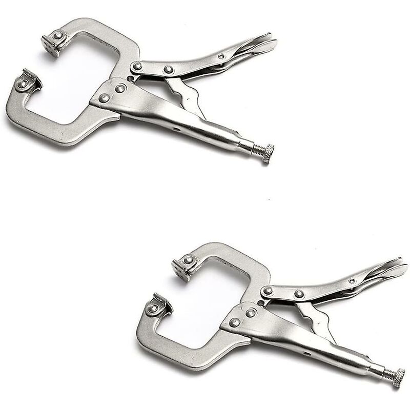 Set di 2 morsetti a forma di C - Dimensioni: 28,5 cm. Basta girare la vite per regolare la pressione. Grilletto protetto per sgancio rapido. Cuscinetti girevoli su punte di bloccaggio per superfici irregolari e angoli dispari costruiti per durare. Si inclinano sia in avanti che all'indietro, il che è ottimo per l'uso in spazi o angoli scomodi. L'impugnatura del grilletto è caricata a molla e comoda da impugnare per lavori pesanti o piccoli progetti. Bloccaggio C-Clamp: questi morsetti possono essere piccoli, ma sono forti e versatili. Fai scorrere le ganasce aperte delle pinze sulla superficie. Fissare saldamente le ganasce alla superficie e utilizzare la vite per serrare per ottenere la coppia massima. Il morsetto a C manterrà quindi il tuo hardware su scrivanie, carrelli, banco da lavoro, tavolo da lavoro o pali. I piedini girevoli consentono allo strumento di stare su qualsiasi superficie inclinata e assicurano che il tuo progetto rimanga sicuro mentre ci lavori. La maniglia a