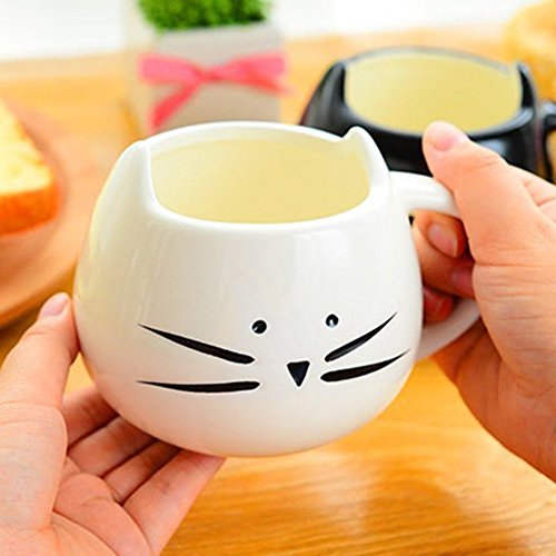 Cisixin 300ml Gatto Ceramica Carina Coppa, Tazza da caffè in Ceramica, innovativi Modello Cup(Bianco)