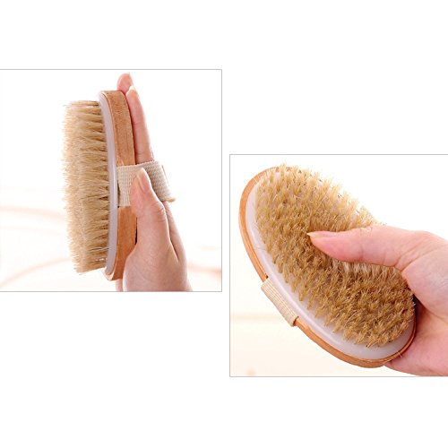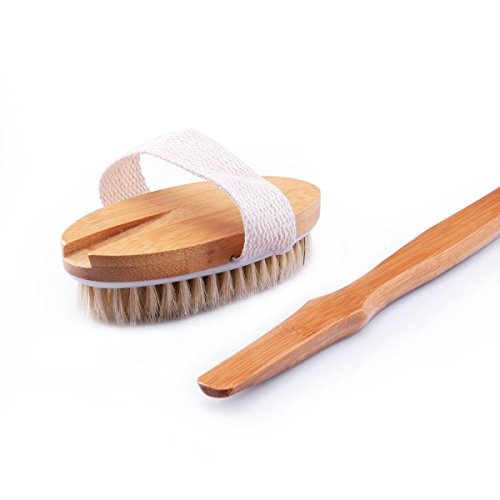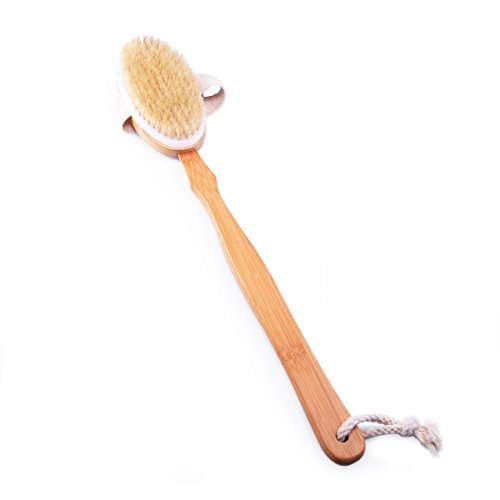 Cisixin Spazzola esfoliante da bagno, Spazzola in legno di faggio, manico lungo, testa staccabile, setole naturali