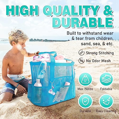 CISSIYOG Grande Borsa a Rete da Spiaggia con Cerniera 43x39x20cm Borsa Mare Grande Anti-Sabbia Organizer Pieghevole Porta Vestiti Giocattoli Asciugamano per Viaggio Spiaggia Piscina (Blue)