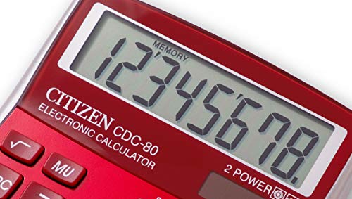 Citizen calculator CDC80 8 Digits Red Desktop Battery Dual Power Office