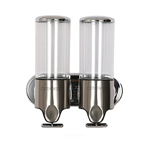 CITTATREND Dispenser per Sapone Liquido in Doppio Plastica ABS Montaggio a Parete Bagno Cucina Dosatori Schiuma Lozione per i capelli Disinfettante Mano Shampoo Gel Doccia Trasparente