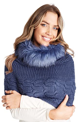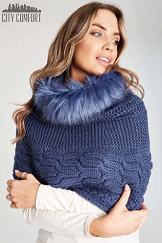 CityComfort Scaldacollo da Donna, Scaldacollo in Maglia, Sciarpa Snood in Pelliccia Sintetica (Blu)