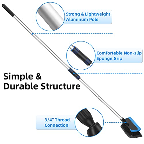 CityMoka Spazzola per autolavaggio con Manico Lungo, Kit di spazzole telescopiche per Pulizia Auto da 162cm con Testa raschiante, Lunghezza Asta Regolabile in Alluminio, Attrezzatura per autolavaggio