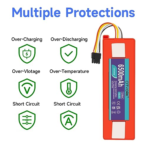 CITYORK Batteria agli ioni di litio di ricambio per Roborock E5 S6 S7 Q7 Pure MaxV Xiaomi Mijia Robot Aspirapolvere Batteria di ricambio - 14,4 V 6500 mAh