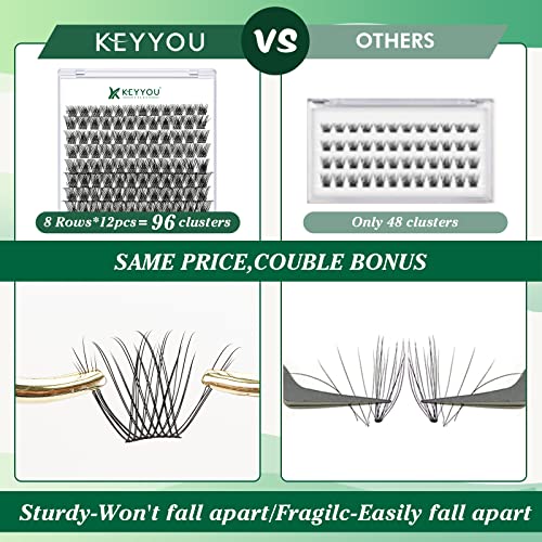 Ciuffi di ciglia, 96 ciuffetti di ciglia curvatura a D, 10-18 MIX, extension per ciglia fai da te, ciuffi KEYYOU volumizzanti, singole, morbide e confortevoli, facili da fare a casa (Y13, D-10-18MIX)