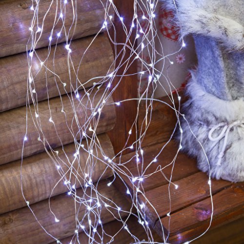 Ciuffo Metal 1,5 m, 350 microled Bianco Freddo, Cavo Metal, Flashing, con trasformatore 12V, Uso Interno