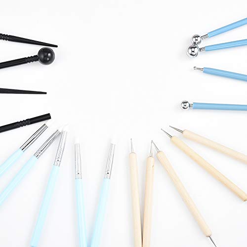 Confezione include: Diversi tipi di 18 attrezzi scultura argilla, tra cui 5 stilo in legno con impugnatura a sfera, 5 penne in gomma, 4 stilo in plastica e 4 stilo in metallo con impugnatura a sfera