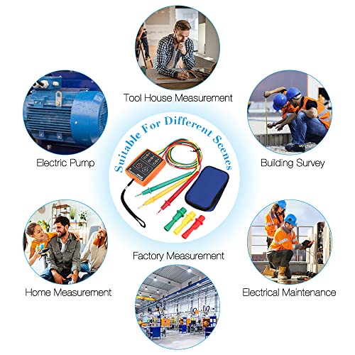 Facile da usare: il LED verde mostra la corretta sequenza delle fasi e emette un segnale acustico a intermittenza. Il LED rosso viene visualizzato in ordine inverso ed emette un segnale acustico continuo. Per tua comodità, il tester è dotato di 3 cavi a pinza.